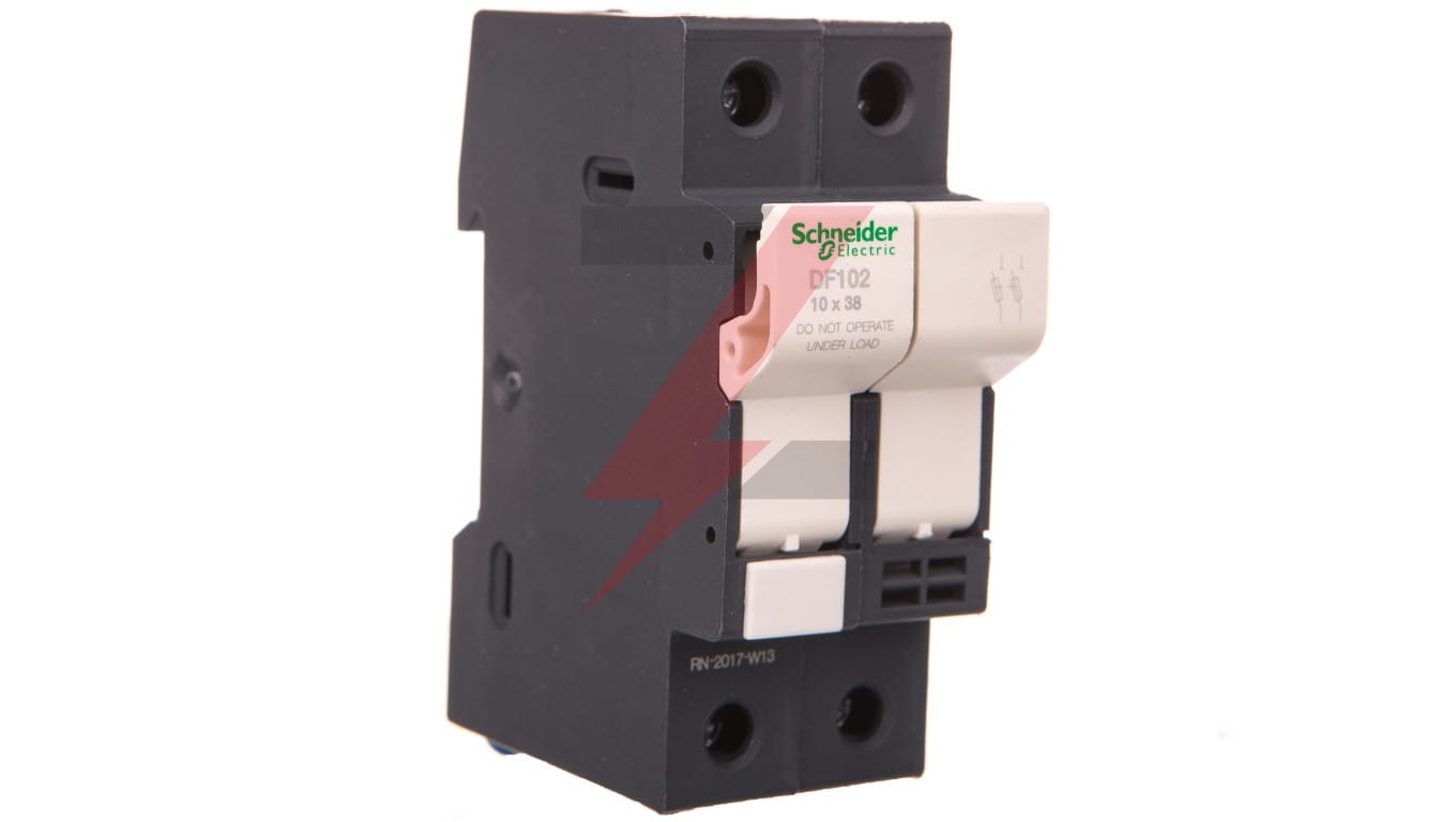 Modułowy nośnik bezpieczników tesys DF, 2 bieguny (2P), do ochrony obwodów sterowania do 32 A/690 VDo użytku z bezpiecznikami 10 x 38 mm do 32 A i prądem zwarciowym do 120kA@400V. Kompaktowa (szerokość 35 mm), może być stosowana w panelach modułowych, przypinana na szynie DIN 35 mm, połączenie za pomocą zacisków śrubowych, kłódka bez akcesoriówDostępne są wkładki bezpiecznikowe (10x38mm aM, typu gG) i dodatkowe akcesoria (zestawy nośników bezpieczników, znaczniki zaciskowe) (do zamówienia oddzielnie)Sprzedany w 6 opakowaniachCertyfikowanych w wielu standardach (IEC, UL, CSA, CCC, EAC, Marine), Green premium (RoHS/REACh).