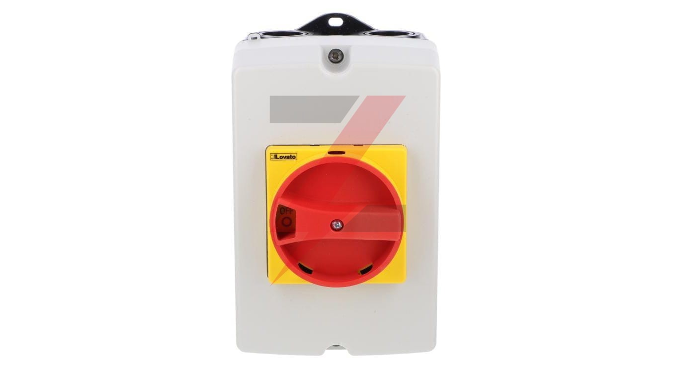 Rozłącznik izolacyjny 3P 16A w obudowie z tworzywa, pokrętło żółto/czerwone GAZ016