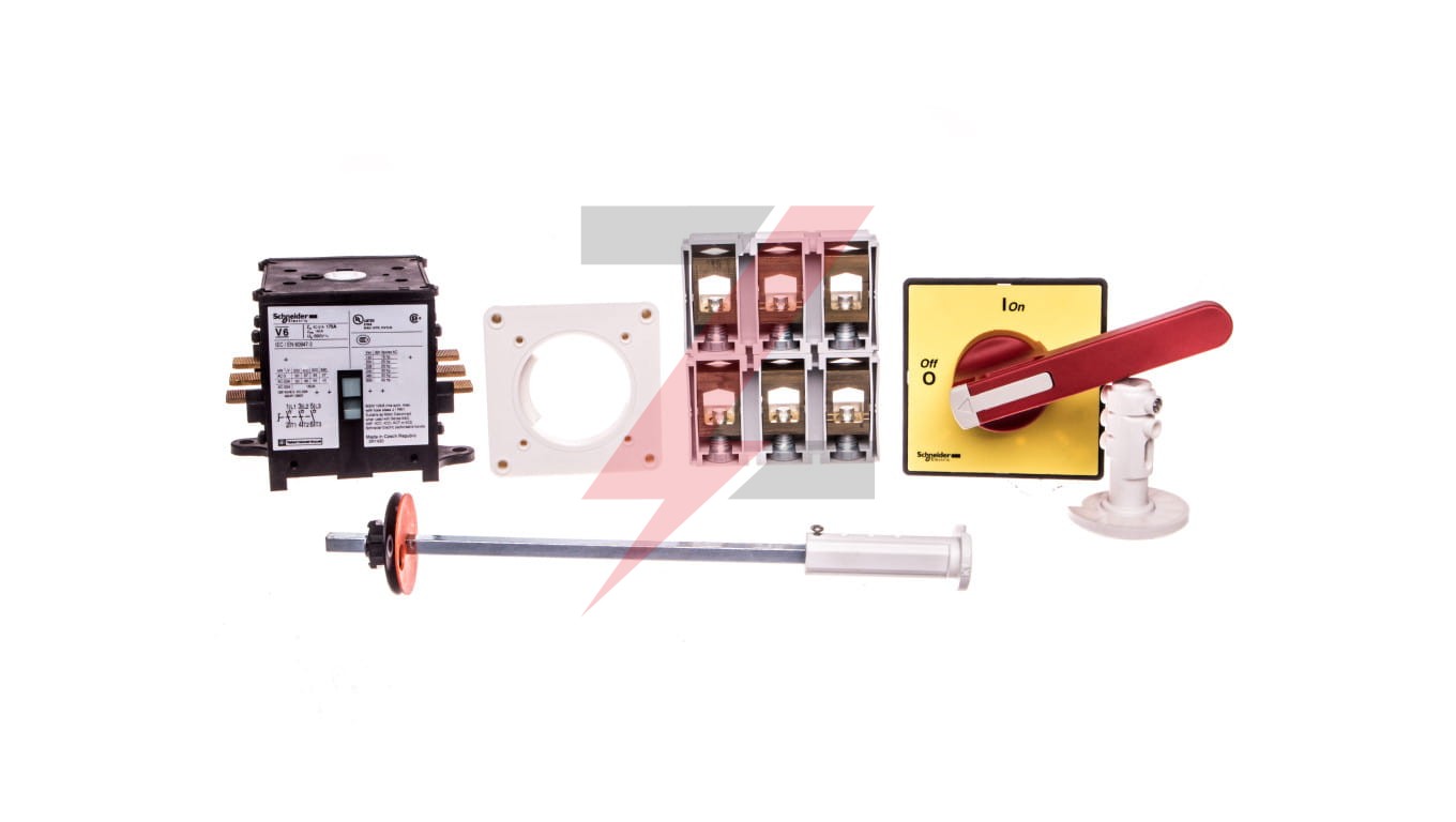 Rozłącznik TeSys Vario do montażu z tyłu obudowy, 3-biegunowy, 175A/690V, do przełączania silników do 45kW@400V AC-23. Kompletny aparat składa się z korpusu rozłącznika V6, przedłużenia napędu VZN18, płytki blokady drzwi KZ74, czerwonego uchwytu z żółtą płytką przednią 90x90mm KCF3PZ. Przeznaczony do użytku jako rozłącznik główny i wyłącznik awaryj ny. Uchwyt zamykany na kłódkę, na 3 kłódki (zamawiane oddzielnie). Uchwyt z mocowaniem do drzwi za pomocą 4 śrub, zapewniający stopień ochrony IP65. Możliwa odległość między tyłem obudowy a drzwiami 330-350 mm. Posiada certyfikaty wielu norm (IEC, UL, CSA, CCC, EAC, Certyfikaty morskie), zgodność z Green Premium (RoHS/REACh). Etykieta Green Premium