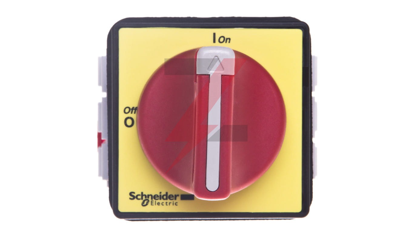 Rozłącznik TeSys Vario do montażu na drzwiach, 3-biegunowy, 25A/690V, do przełączania silników do 7,5kW@400V AC-23. Kompletny aparat składający się z korpusu rozłącznika V0, czerwonego uchwytu z żółtą płytką czołową KCF1PZ o wymiarach 60x60mm. Przeznaczony do użytku jako rozłącznik główny i wyłącznik awaryjny. Uchwyt zamykany na kłódkę, na 3 kłódki (zamawiane oddzielnie). Uchwyt z 4 śrubami mocującymi do drzwi, zapewniający stopień ochrony IP65. Posiada certyfikaty wielu norm (IEC, UL, CSA, CCC, EAC, Certyfikaty morskie), jest zgodny z Green Premium (RoHS/REACh). Etykieta Green Premium jest zobowiązaniem firmy Schneider Electric do dostarczania produktów o najwyższej w swojej klasie ekologi