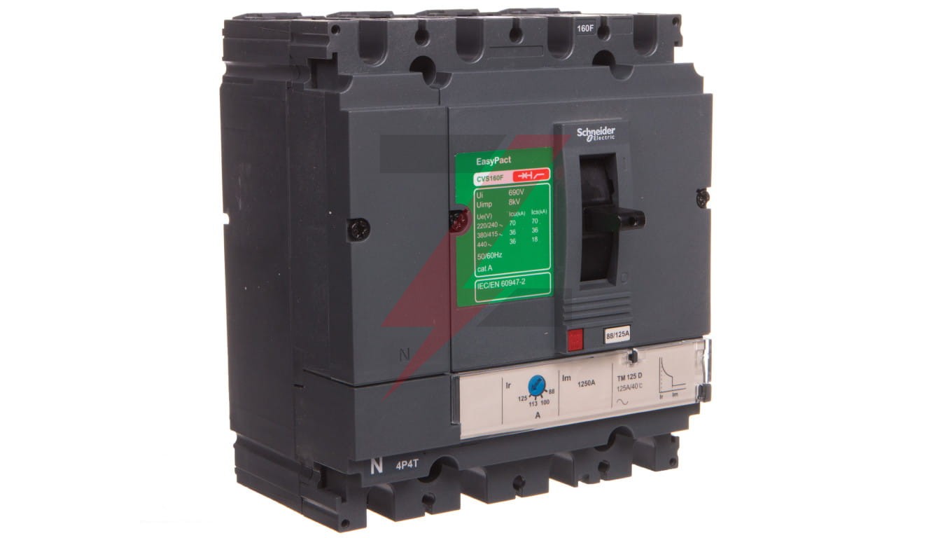 EasyPact CVS160F to 4-biegunowy wyłącznik stacjonarny (4D). Jest to optymalny wybór do zastosowań związanych z ochroną małych i średnich budynków. Zdolność wyłączania (Icu) wynosi 36kA rms przy 415VAC 50/60Hz. Napięcie robocze wynosi 440 V AC 50/60 H z. Ten produkt zawiera wyzwalacz termiczno-magnetyczny (TMD) o wartości znamionowej 125 A. Wyzwalacz TMD zapewnia regulowane zabezpieczenie przed przeciążeniem termicznym i stałe zabezpieczenie magnetyczne. Ta wersja 4-biegunowa (140 mm x 161 mm x 86 mm) jest dostarczana z różnymi opcjonalnymi funkcjami i akcesoriami. EasyPact CVS160F jest zgodny z międzynarodowymi normami (IEC 60947, CCC, EAC). Może być instalowany w rozdzielnicach z izolacją klasy II, ponieważ jest urządzeniem czołowym klasy I I (IEC 60664-1). Green Premium pozwoli spełnić Twoje zobowiązania w zakresie zrównoważonego rozwoju, zapewniając produktom zgodność z przepisami dotyczącymi ochrony środowiska, takimi jak RoHS i REACH, a także doskonałą przejrzystość w kwestii ujawni ania informacji o środowisku i instrukcji dotyczących zakończenia eksploatacji
