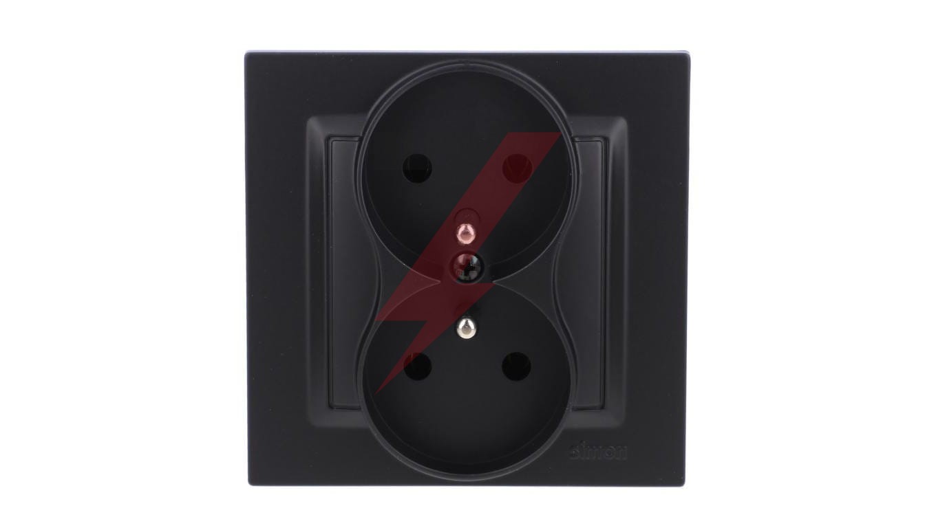 Simon 10 Gniazdo wtyczkowe z uziemieniem podwójne, monoblok, 16A, 250V, zaciski śrubowe kompletne, czarny mat CGZ2/49