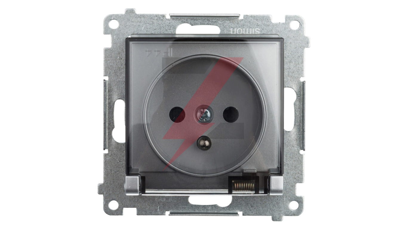 Simon 54 Gniazdo bryzgoszczelne z/u IP44 z klapką transparentną bez uszczelki srebrny mat DGZ1BUZ.01/43A