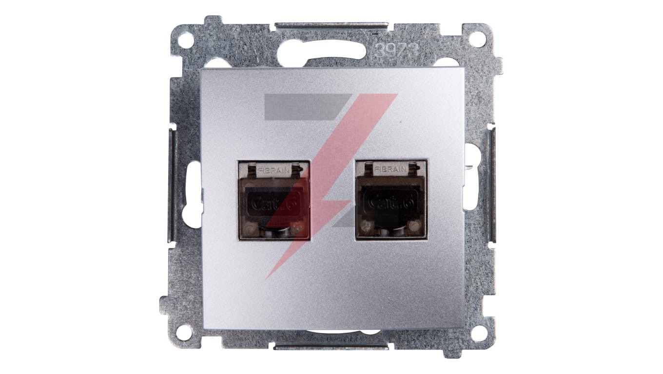 Simon 54 Gniazdo komputerowe podwójne 2xRJ45 kat.6 ekranowane z przesłoną srebrny mat D62E.01/43
