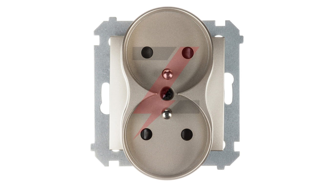 Simon 54 Gniazdo podwójne z/u 16A IP20 z przesłoną torów złoty mat DGZ2MZ.01/44