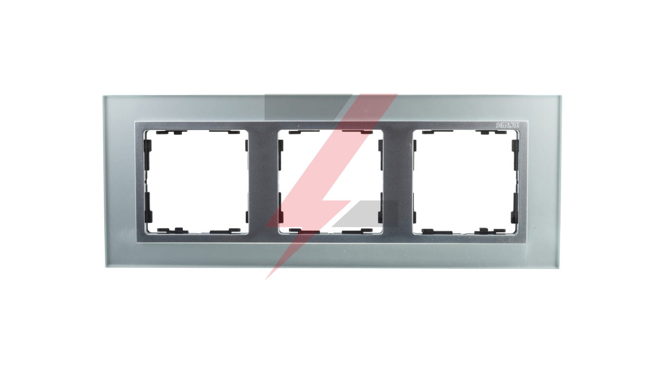 Simon 82 Ramka potrójna pozioma szklana srebro/ ramka pośrednia aluminium mat 82937-62