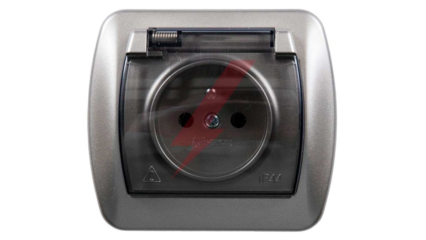 Simon Akord Gniazdo bryzgoszczelne z/u IP44 z klapką dymną satyna metalizowana AGZ1Be/29a