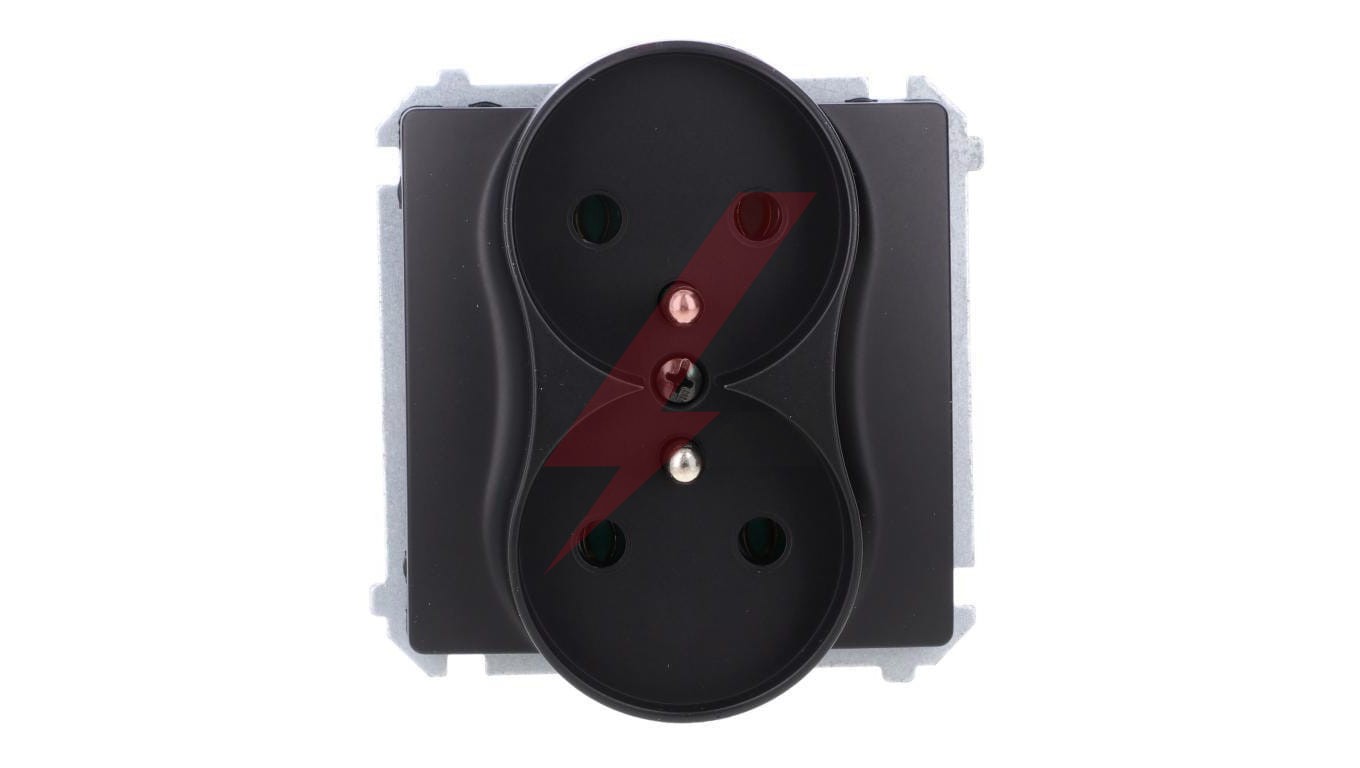 Simon Basic Gniazdo wtyczkowe podwójne z uziemieniem (moduł),16A, 250V, zaciski śrubowe czarny BMGZ2M.01/49