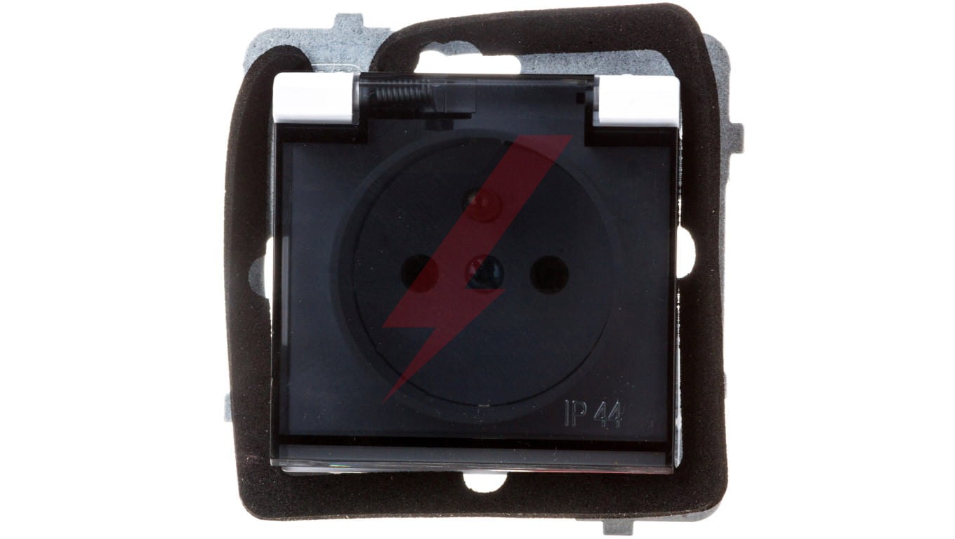 SONATA Gniazdo bryzgoszczelne z uziemieniem IP-44 wieczko przezroczyste biały mat GPH-1RZ/m/75/d