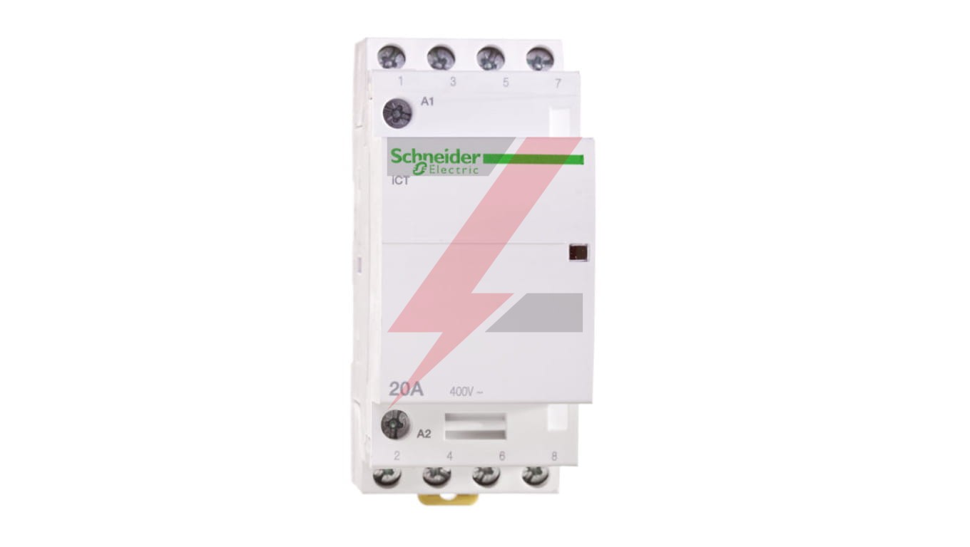 Stycznik modułowy iCT50-20-40-230 20A 4NO 50Hz 220/240 VAC ,o numerze A9C22824. Optyczny wskaźnik stanu styków wyjściowych, możliwość rozbudowy o styki pomocnicze Prąd znamionowy wynosi 20A Wytrzymałość elektryczna sięga do 100000 cykli dla AC-7A lub AC-1, 30000 cykli dla AC-7C, AC-3, AC-5A lub AC-5B. Maksymalna liczba operacji przełączania to 6 na minutę. Stopień ochrony to IP20 i IP40 w obudowie. Jest montowany na szynie DIN. To urządzenie może być używane do zdalnego przełączania obciążeń oświetleniowych, małych silników (wentylatory, miksery) lub aplikacji systemów HVAC. Jest kompatybilny ze wszystkimi pomocniczymi urządzeniami sterującymi Acti 9, do zastosowań związanych z oświetleniem, ogrzewaniem i wentylacją. Ten produkt jest zgodny z normą IEC/EN 61095.