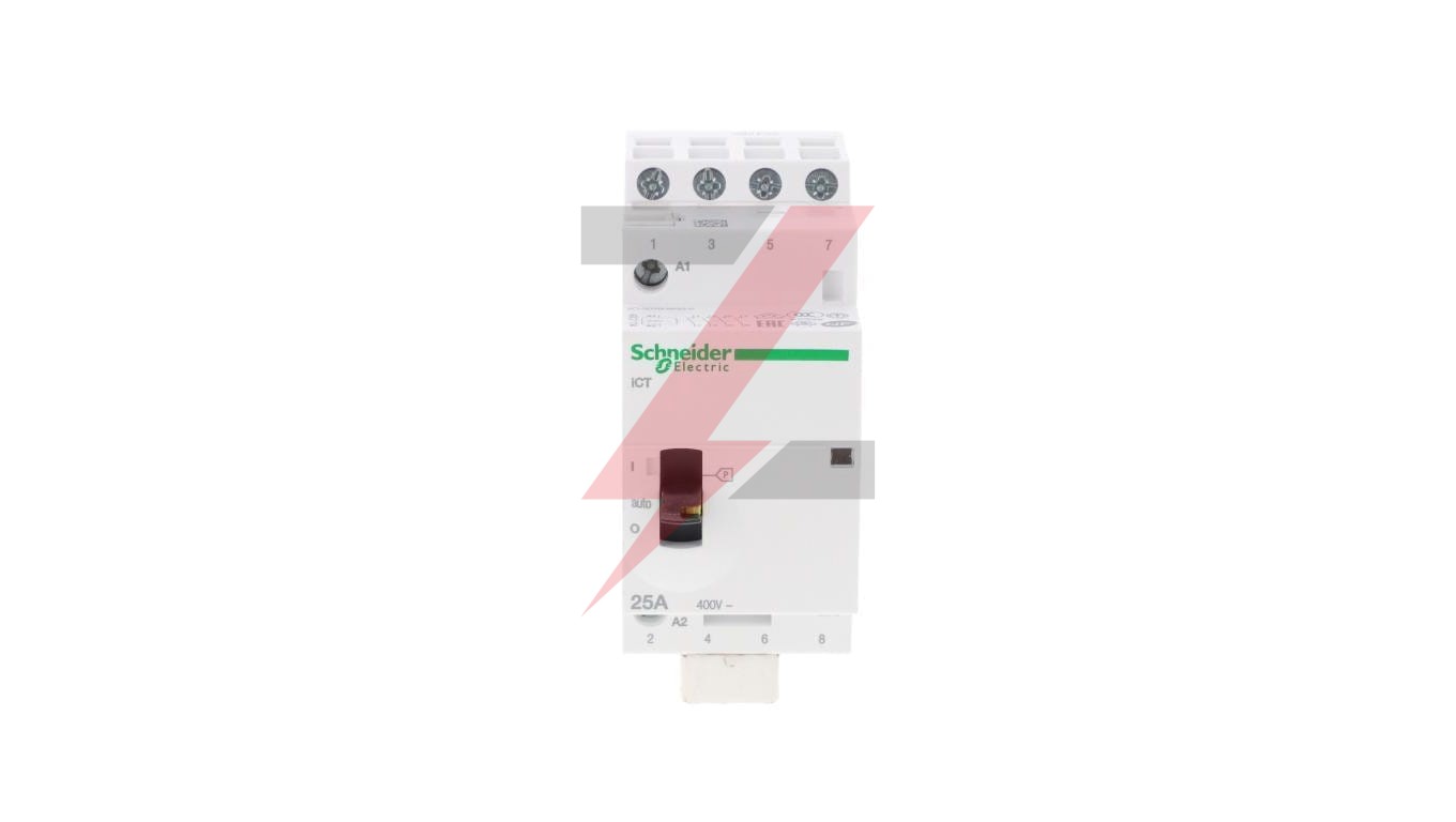 Stycznik modułowy iCT50r25-40-24 25A 4NO 50/50Hz 24 VAC ,o numerze A9C21134. Optyczny wskaźnik stanu styków wyjściowych, możliwość rozbudowy o styki pomocnicze Prąd znamionowy wynosi 25A Wytrzymałość elektryczna sięga do 100000 cykli dla AC-7A lub AC-1, 30000 cykli dla AC-7C, AC-3, AC-5A lub AC-5B. Maksymalna liczba operacji przełączania to 6 na minutę. Stopień ochrony to IP20 i IP40 w obudowie. Jest montowany na szynie DIN. To urządzenie może być używane do zdalnego przełączania obciążeń oświetleniowych, małych silników (wentylatory, miksery) lub aplikacji systemów HVAC. Jest kompatybilny ze wszystkimi pomocniczymi urządzeniami sterującymi Acti 9, do zastosowań związanych z oświetleniem, ogrzewaniem i wentylacją. Ten produkt jest zgodny z normą IEC/EN 61095.