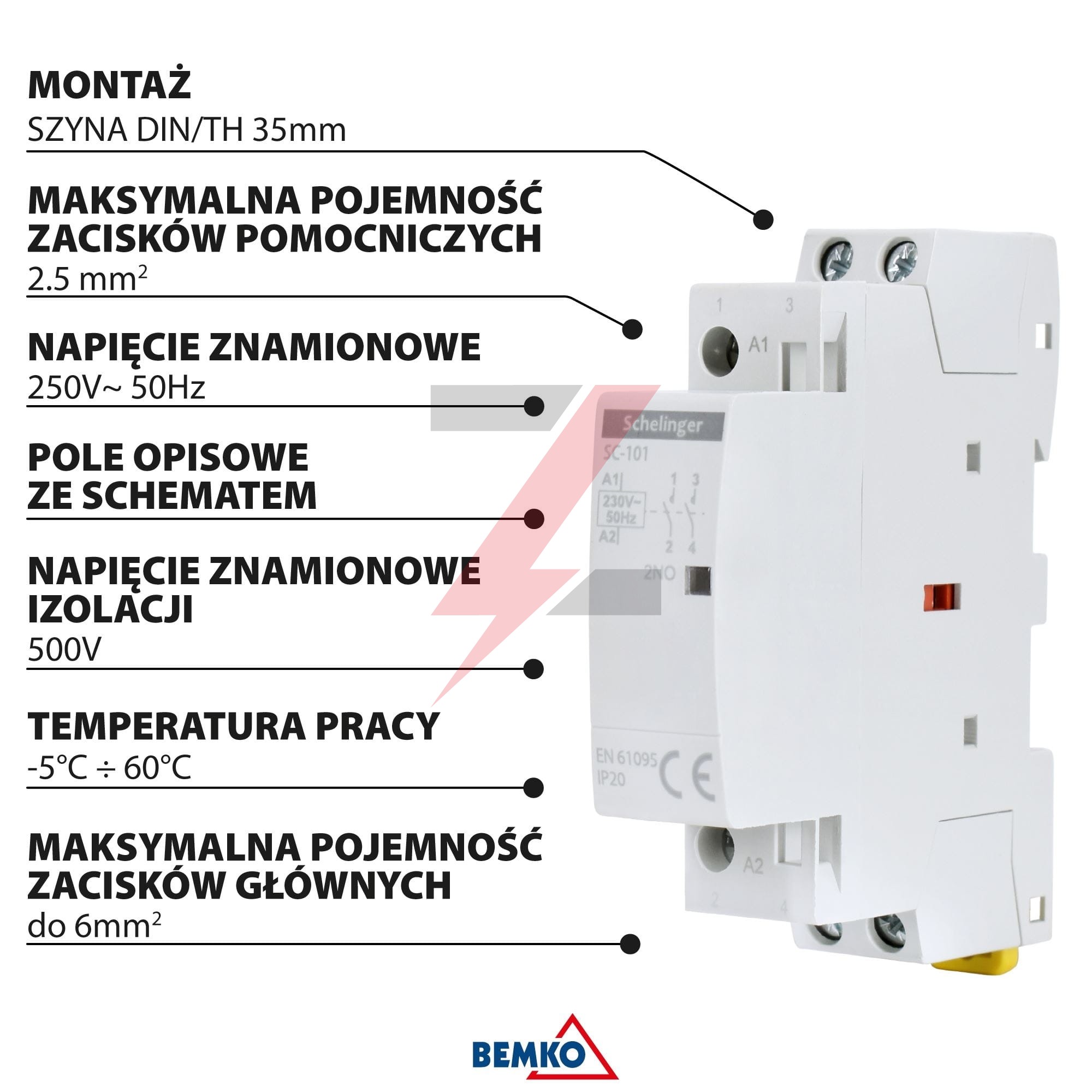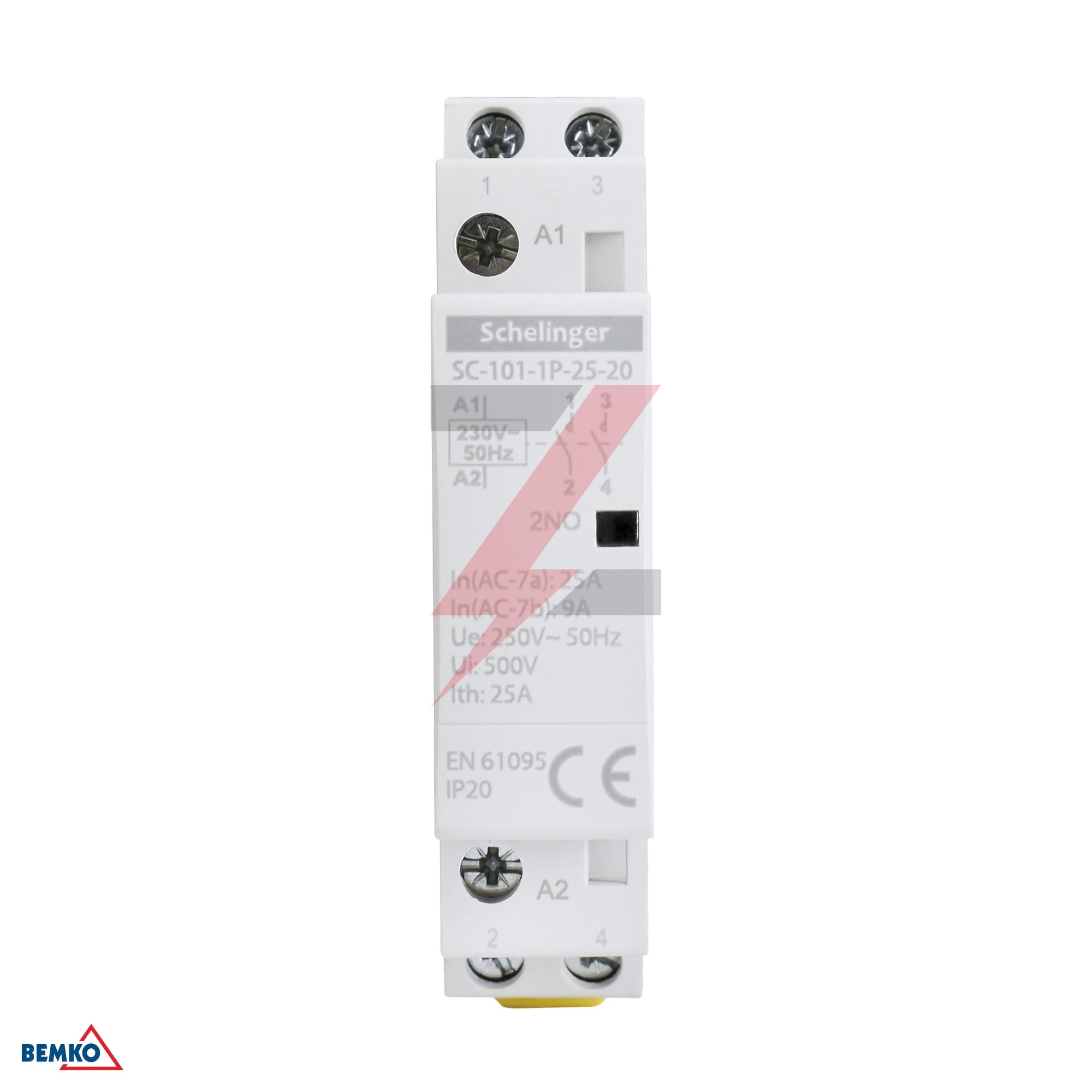 STYCZNIK MODUŁOWY SC101 1P 25A TYP 20 (2NO+0NC) SCHELINGER A62-SC-101-1P-25-20