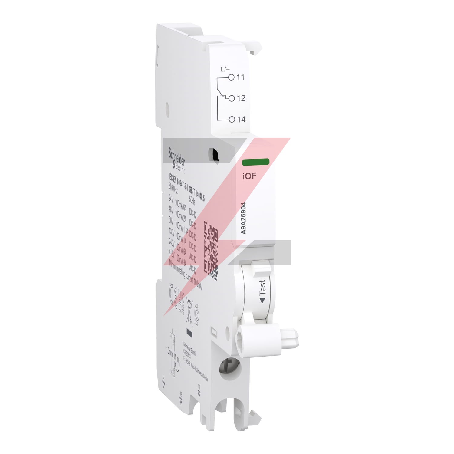 Jest to modułowy styk pomocniczy OF Acti9, używany jako zdalny wskaźnik pozycji powiązanego urządzenia. W sieci AC prąd znamionowy (ln) wynosi od 100mA do 6A przy częstotliwości roboczej od 50Hz do 60Hz przy 240VAC oraz od 100mA do 3A przy częstotliwości roboczej od 50Hz do 60Hz przy 415VAC. W sieci DC prąd znamionowy (ln) zaczyna się od 100mA przy 24VDC do 130VDC. Wzrasta do 6A przy 24VDC, 2A przy 48VDC, 1.5A przy 60VDC i 1A przy 130VDC. Posiada 1 pozycyjny wyłącznik ze stykami typu 1 C/O. Przeznaczony jest do nowych lub remontowanych instalacji w małych obiektach komercyjnych lub budynkach. Przeznaczony jest do nowych lub remontowanych instalacji w małych obiektach komercyjnych lub budynkach. Ten styk iSD jest kompatybilny z seriami Acti9, takimi jak Acti9 iDT40, iDT40 XA i iDD40. iOF jest używany jako skrócona nazwa urządzenia lub kod zgodności. Ma złącze zacisku śrubowego na dole. Połączenie pozwala na sztywny drut miedziany. Zakres przekroju wynosi od 1mm² do 4mm². Ma złącze zacisku śrubowego na dole. Połączenie pozwala na podłączenie elastycznego druta miedzianego. Zakres przekroju wynosi od 0,5mm² do 2,5mm². Ma złącze zacisku śrubowego na dole. Połączenie pozwala na podłączenie sztywnego druta miedzianego. Zakres przekroju wynosi 2,5mm². Ma złącze zacisku śrubowego na dole. Połączenie pozwala na podłączenie 2 elastycznych drutów miedzianych z tulejami. Zakres przekroju wynosi 1,5mm². Napięcie znamionowe izolacji Ui wynosi do 500V. Napięcie znamionowe wytrzymywane Uimp wynosi 4kV. Szerokość wynosi 9mm. Wymiary to: (szer.) 9mm x (wys.) 86 mm x (gł.) 73 mm. Kolor: biały (RAL 9003). Stopień zanieczyszczenia wynosi 3. Poziom tropikalizacji to 2. Moment dokręcania połączenia wynosi 1N.m (dół) dla wkrętaka PZ1. Zgodnie z normą IEC 60529 stopień ochrony IP to IP20. Temperatura pracy wynosi od -35°C do +70°C. Temperatura przechowywania wynosi od -40°C do +85°C. Ten produkt jest zgodny z normami EN/IEC 60947-5-1 i GB/T 14048.5. Ten produkt jest certyfikowany z oznaczeniami CE i UKCA.