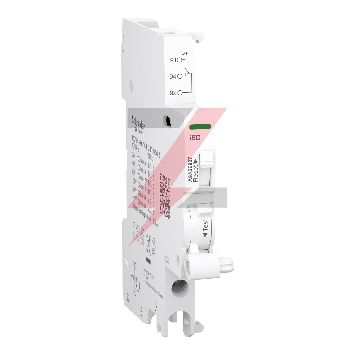 Jest to modułowy styk sygnalizacyjny iSD Acti9 używany jako zdalny wskaźnik wyzwolenia w przypadku usterki powiązanego urządzenia. W sieci AC prąd znamionowy (ln) wynosi od 100mA do 6A przy częstotliwości roboczej od 50Hz do 60Hz przy 240VAC oraz od 100mA do 3A przy częstotliwości roboczej od 50Hz do 60Hz przy 415VAC. W sieci DC prąd znamionowy (ln) zaczyna się od 100mA przy 24VDC do 130VDC. Wzrasta do 6A przy 24VDC, 2A przy 48VDC, 1.5A przy 60VDC i 1A przy 130VDC. Posiada 1 pozycyjny wyłącznik ze stykami typu 1 C/O. Przeznaczony jest do nowych lub remontowanych instalacji w małych obiektach komercyjnych lub budynkach. Przeznaczony jest do nowych lub remontowanych instalacji w małych obiektach komercyjnych lub budynkach. Ten styk iOF jest kompatybilny z seriami Acti9, takimi jak Acti9 iDT40, iDT40 XA i iDD40. Identyfikator iSD jest używany jako skrócona nazwa urządzenia lub kod zgodności. Wskaźnik mechaniczny znajduje się na produkcie do sygnalizacji (lokalny). Ma złącze zacisku śrubowego na dole. Połączenie pozwala na sztywny drut miedziany. Zakres przekroju wynosi od 1mm² do 4mm². Ma złącze zacisku śrubowego na dole. Połączenie pozwala na podłączenie elastycznego druta miedzianego. Zakres przekroju wynosi od 0,5mm² do 2,5mm². Ma złącze zacisku śrubowego na dole. Połączenie pozwala na podłączenie sztywnego druta miedzianego. Zakres przekroju wynosi 2,5mm². Ma złącze zacisku śrubowego na dole. Połączenie pozwala na podłączenie 2 elastycznych drutów miedzianych z tulejami. Zakres przekroju wynosi 1,5mm². Napięcie znamionowe izolacji Ui wynosi do 500V. Napięcie znamionowe wytrzymywane Uimp wynosi 4kV. Szerokość wynosi 9mm. Wymiary to: (szer.) 9mm x (wys.) 86 mm x (gł.) 73 mm. Kolor: biały (RAL 9003). Stopień zanieczyszczenia wynosi 3. Poziom tropikalizacji to 2. Moment dokręcania połączenia wynosi 1N.m (dół) dla wkrętaka PZ1. Zgodnie z normą IEC 60529 stopień ochrony IP to IP20. Temperatura pracy wynosi od -35°C do +70°C. Temperatura przechowywania wynosi od -40°C do +85°C. Ten produkt jest zgodny z normami EN/IEC 60947-5-1 i GB/T 14048.5. Ten produkt jest certyfikowany z oznaczeniami CE i UKCA.