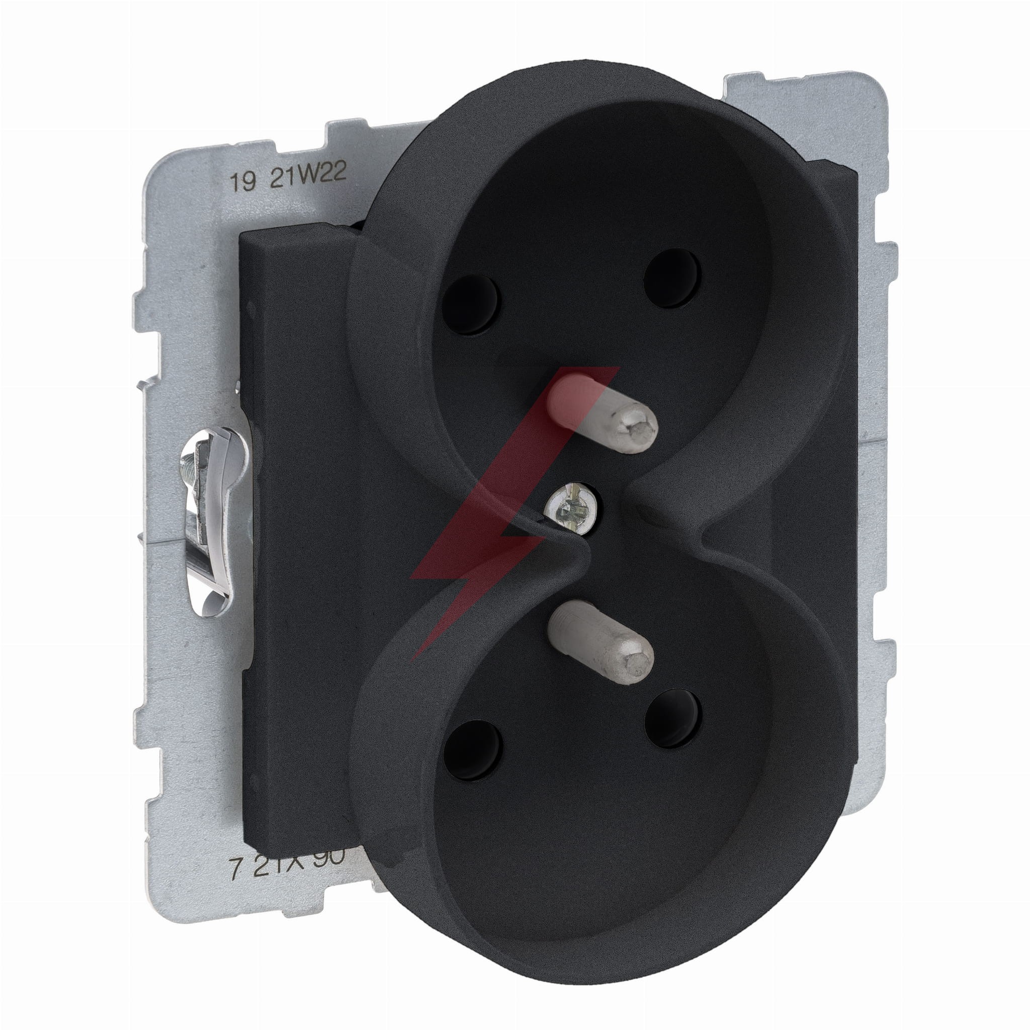 SUNO Gniazdo podwójne 2x2P+Z czarne 16A 250V zaciski automatyczne z przesłoną 721490