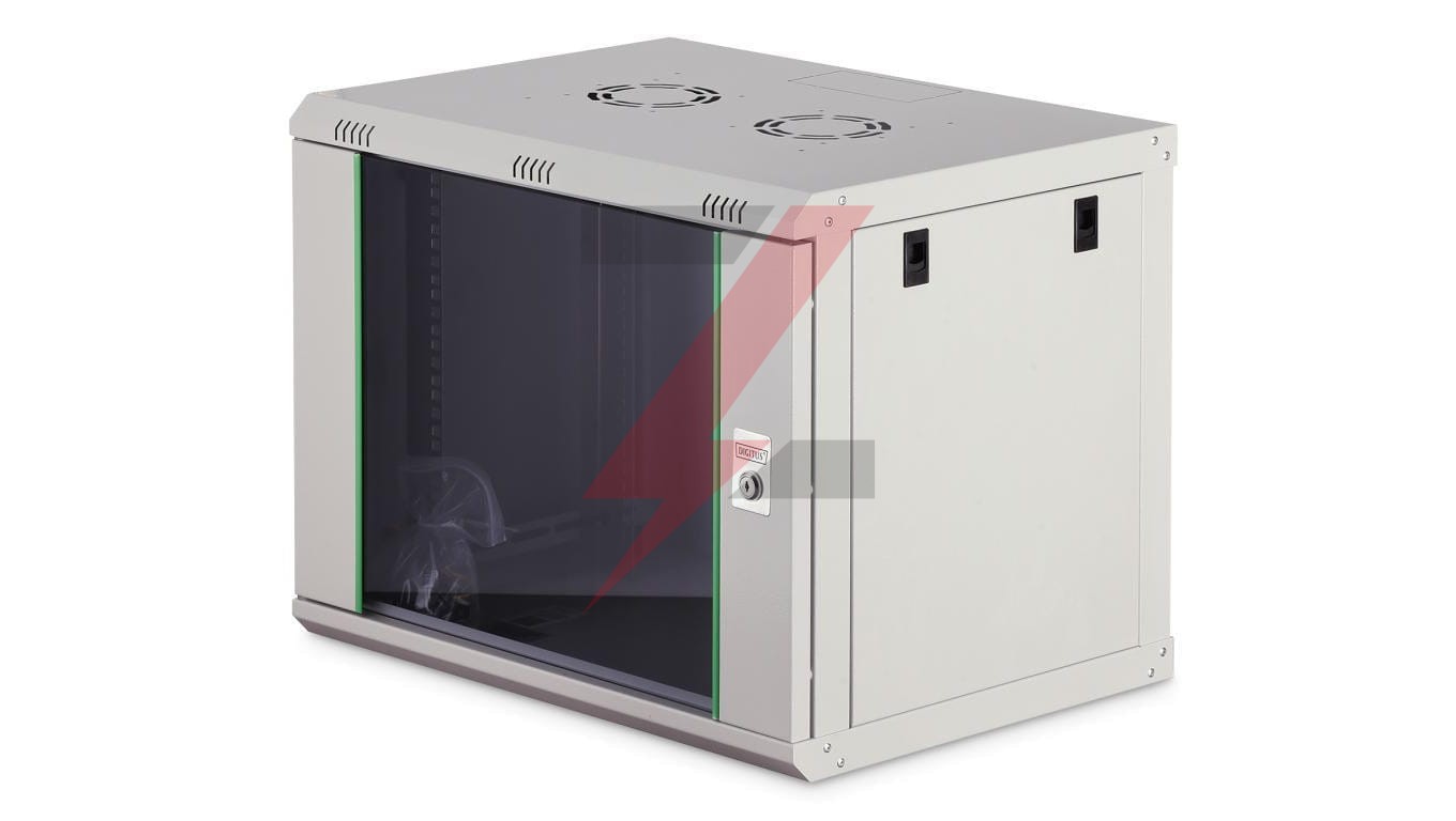 Szafa sieciowa wisząca Dynamic 19 9U rack 600x450, drzwi szyba, szary, niezłożona, 60kg DN-37104