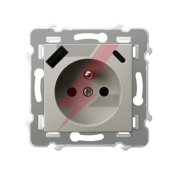 SZAFIR Gniazdo pojedyncze z uziemieniem z przesłonami torów prądowych z ładowarką, USB A+C kaszmirowy beż GP-1ZZPUSBAC/m/83