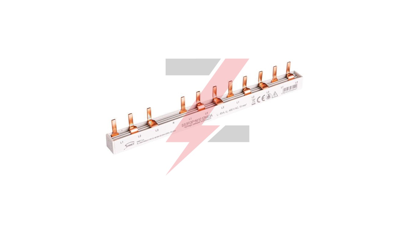 Szyna prądowa łączeniowa - sztyftowa 3-fazowa 63A 12 modułów 10 mm² pod zabezp. różnicowo-prądowe SS3F(3P+N) 10 12M63A 81996206