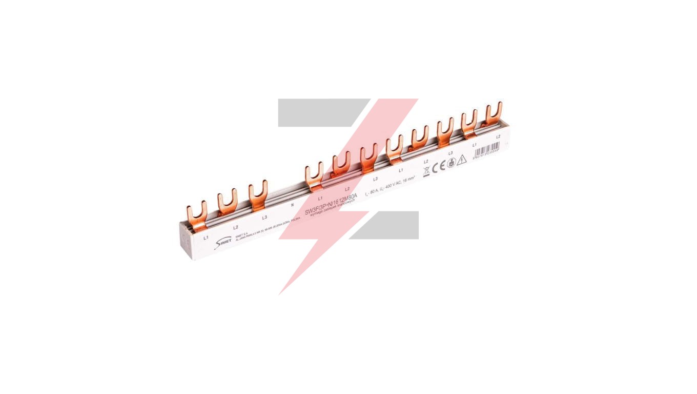 Szyna prądowa łączeniowa - widełkowa 3-fazowa 80A 12 modułów 16 mm² pod zabezp. różnicowo-prądowe SW3F(3P+N) 16 12M80A 81994206