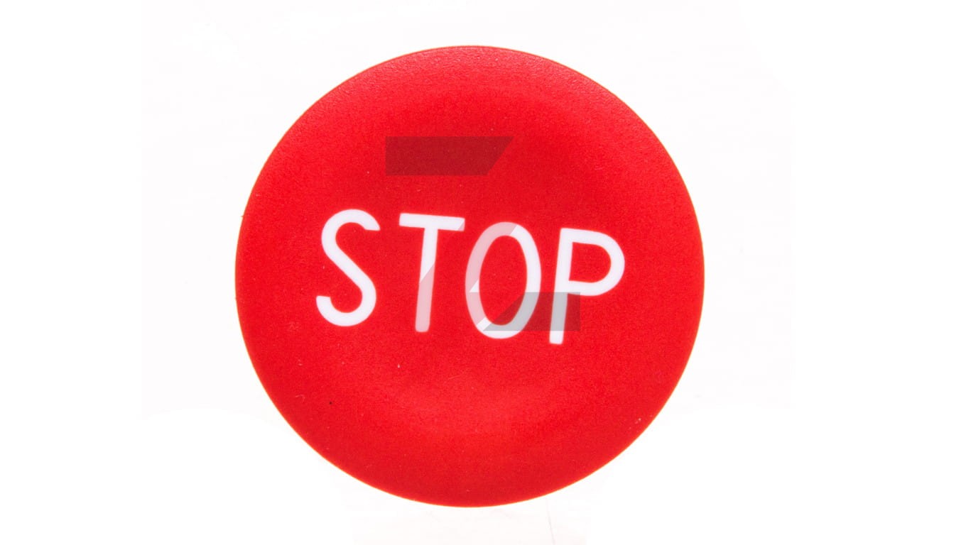 Wkładka przycisku 22mm płaska czerwona z symbolem STOP ZBA434