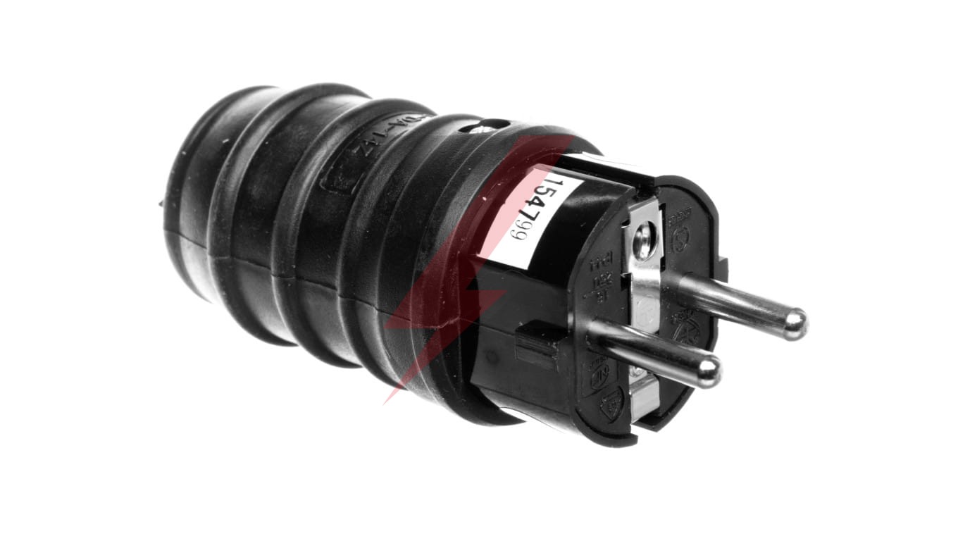 Wtyczka gumowa 10/16A 250V 2P+Z IP44 czarna P0050