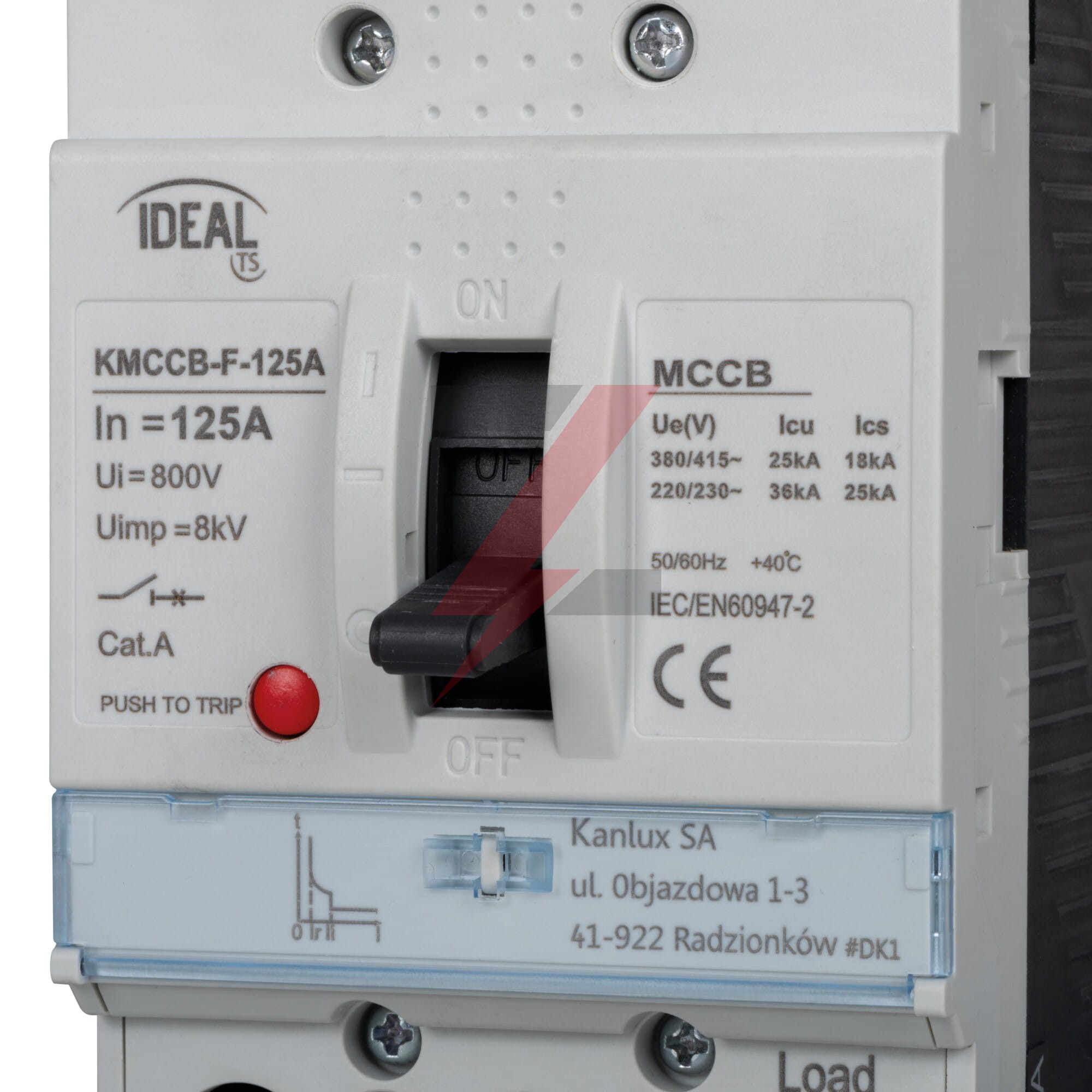 Wyłącznik kompaktowy MCCB KMCCB-F-125A 3 bieguny 25kA(380/415V AC) 36kA(220/230V AC) IP20 36290