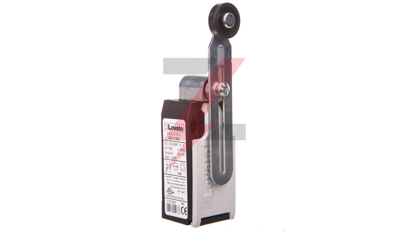 Wyłącznik krańcowy dwukierunkowy, z dźwignią regulowaną z rolką z tworzywa, obudowa z tworzywa, 2R zestyki niezależne KBF1D02