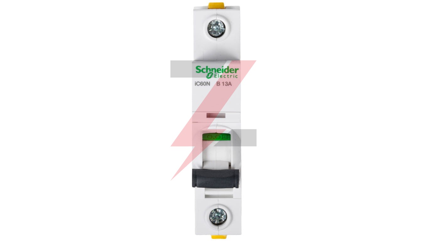 Wyłącznik nadprądowy iC60N-B13-1 B 13A 1-biegunowy ,o numerze A9F03113. Możliwość bezpośredniego podłączenia dwóch przewodów o różnych przekrojach. O ptyczny wskaźnik Visi-Trip wyzwolenia elektrycznego, biało-czerwony. Możliwość demontażu pojedynczego aparatu bez potrzeby zdejmowania szyny łączeniowej. Zdjemowanie z szyny DIN bez użycia narzędzi. Jego klasa ograniczenia 3 (zgodnie z normą EN/IEC60898-1) poprawia koszt ochrony obwodu odpływowego. Unikalny wskaźnik Visitrip skraca czas interwencji, pokazując uszkodzony obwód.