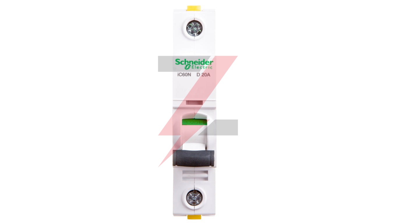 Wyłącznik nadprądowy iC60N-D20-1 D 20A 1-biegunowy ,o numerze A9F05120. Możliwość bezpośredniego podłączenia dwóch przewodów o różnych przekrojach. O ptyczny wskaźnik Visi-Trip wyzwolenia elektrycznego, biało-czerwony. Możliwość demontażu pojedynczego aparatu bez potrzeby zdejmowania szyny łączeniowej. Zdjemowanie z szyny DIN bez użycia narzędzi. Jego klasa ograniczenia 3 (zgodnie z normą EN/IEC60898-1) poprawia koszt ochrony obwodu odpływowego. Unikalny wskaźnik Visitrip skraca czas interwencji, pokazując uszkodzony obwód.