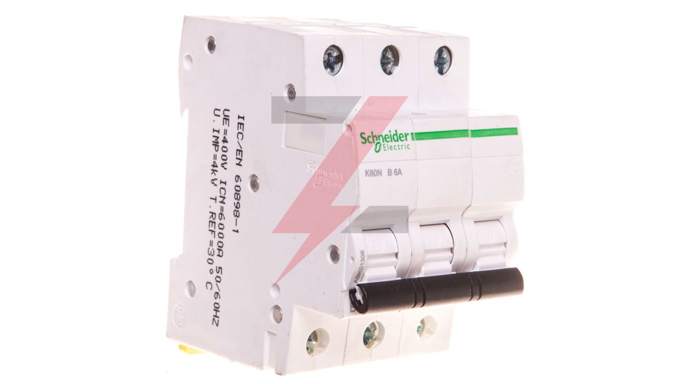 Produkt Acti9 K60N to miniaturowy wyłącznik nadprądowy (MCB) niskiego napięcia. Jest to wyłącznik 3P z 3 chronionymi biegunami i prądem znamionowym 6A In oraz krzywą wyzwalania B. Znamionowa zdolność wyłączania zwarć wynosi do 6000A przy 400VAC zgodnie z normą EN/IEC 60898-1. Produkt zabeziecza obwó d przed zwarciem i prądem przeciążeniowym. Połączenie można wykonać za pomocą szyny grzebieniowej typu biconnect. Połączenie może być również wykonane od góry/dołu za pomocą zacisków tunelowych. W przypadku prac wykonywanych na urządzeniach pod napięciem dostępna jest kłódka. Wytrzymałość elektrycz na oraz mechaniczna wynosi do 20000 cykli. Znamionowe napięcie izolacji Ui wynosi 440V AC. Znamionowe napięcie udarowe Uimp wynosi 4kV. Częstotliwość pracy wynosi 50/60Hz. Może być zamontowany na szynie DIN w instalacji modułowej. Jego szerokość wynosi 6 modułów o szerokości 9 mm. Kolor produktu to biały (RAL9003). Wymiary wynoszą (szer.) 54 mm x (wys.) 81 mm x (gł.) 70 mm. Waga wynosi 0,36 kg. Zgodnie z normą IEC 60529, stopień ochrony wynosi IP20 i IP40 w obudowie. Temperatura pracy wynosi od -25°C do 70°C. Temperatura przechowywania wynosi od -40°C do 70°C.