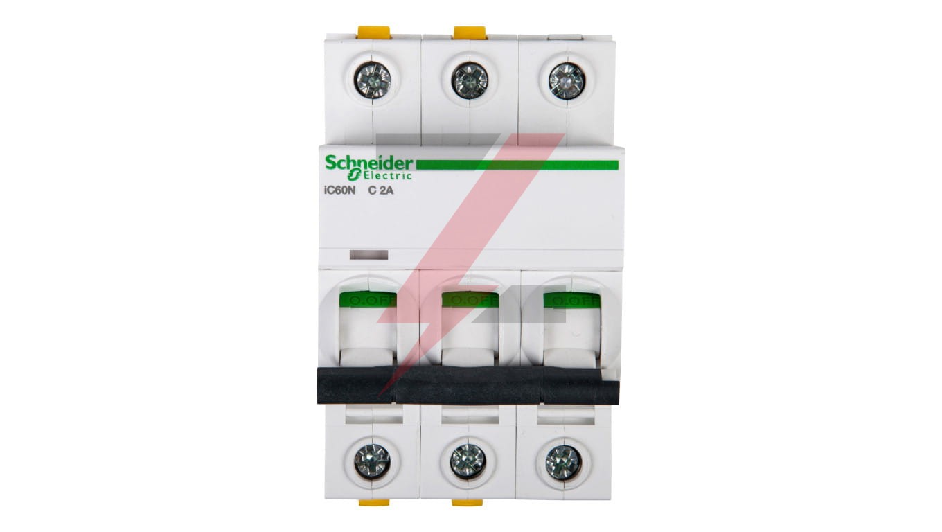 Wyłącznik nadprądowy iC60N-C2-3 C 2A 3-biegunowy ,o numerze A9F04302. Możliwość bezpośredniego podłączenia dwóch przewodów o różnych przekrojach. Opt yczny wskaźnik Visi-Trip wyzwolenia elektrycznego, biało-czerwony. Możliwość demontażu pojedynczego aparatu bez potrzeby zdejmowania szyny łączeniowej. Zdjemowanie z szyny DIN bez użycia narzędzi. Jego klasa ograniczenia 3 (zgodnie z normą EN/IEC60898-1) poprawia koszt ochrony obwodu odpływowego. Unikalny wskaźnik Visitrip skraca czas interwencji, pokazując uszkodzony obwód.