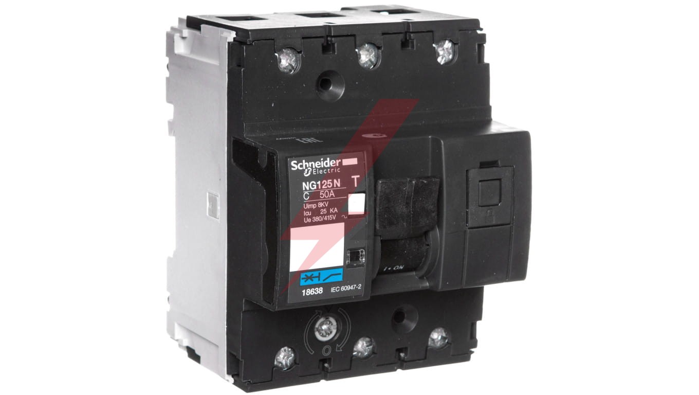 Ten Acti9 NG125N jest wyłącznikiem niskonapięciowym. Jest to wyłącznik automatyczny 3P z 3 chronionymi biegunami i prądem znamionowym 50A In oraz krzywą zadziałania C. Znamionowa zdolność wyłączania zwarć wzrasta do 25 kA przy 380VAC do 415VAC zgodnie z normą EN/IEC 60947-2 i 25 kA przy 380VAC do 415VAC zgodnie z normą EN/IEC 60947-2. Jest on zgodny zarówno z normą przemysłową EN/IEC 60898-1, jak i normą mieszkaniową EN/IEC 60947-2. Ten miniaturowy wyłącznik automatyczny chroni obwody przed zwarciem i prądem przeciążenia. Nadaje się do izolacji w sektorze przemysłowym zgodnie z normą IEC/EN 60947-2. Wyłączenie od zwarcia jest sygnalizowane przez czerwoną lampkę stanu mechanicznego na przedniej stronie wyłącznika automatycznego. Ma wytrzymałość elektryczną sięgającą 10000 cykli i wytrzymałość mechaniczną sięgającą 20000 cykli. Napięcie robocze UE jest równe lub niższe od 375VDC, 220VAC do 240VAC, 380VAC do 415VAC, 440VAC lub 500VAC. Napięcie izolacji znamionowej interfejsu użytkownika wynosi 690 VAC. Znamionowe napięcie udarowe wytrzymywane Uimp wynosi 8 kV. Częstotliwość robocza to 50 Hz lub 60 Hz. Można go zamontować na szynie DIN. Jego szerokość wynosi 9 boiska 9 mm. Stopień zanieczyszczenia wynosi 3. Klasą nadnapięcia jest IV. Wymiary: (sz.) 81 mm x (wys.) 103 mm x (gł.) 81 mm. Waga wynosi 0,41 kg. Zgodnie z normą IEC 60529 stopień ochrony w obudowie wynosi IP20 i IP40. Temperatura robocza wynosi od -30°C do 70°C. Temperatura przechowywania wynosi od -40°C do 70°C.