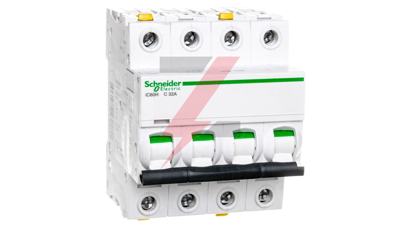 Wyłącznik nadprądowy iC60H-C32-4 C 32A 4-biegunowy ,o numerze A9F07432. Możliwość bezpośredniego podłączenia dwóch przewodów o różnych przekrojach. O ptyczny wskaźnik Visi-Trip wyzwolenia elektrycznego, biało-czerwony. Możliwość demontażu pojedynczego aparatu bez potrzeby zdejmowania szyny łączeniowej. Zdjemowanie z szyny DIN bez użycia narzędzi. Jego klasa ograniczenia 3 (zgodnie z normą EN/IEC60898-1) poprawia koszt ochrony obwodu odpływowego. Unikalny wskaźnik Visitrip skraca czas interwencji, pokazując uszkodzony obwód.