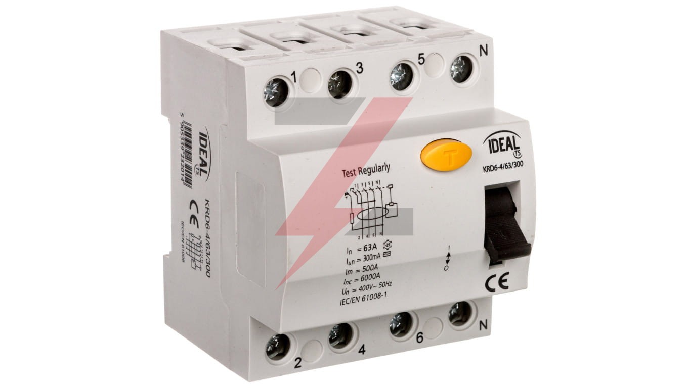 Wyłącznik różnicowoprądowy 4P 63A 0,3A typ AC KRD6-4/63/300 23201