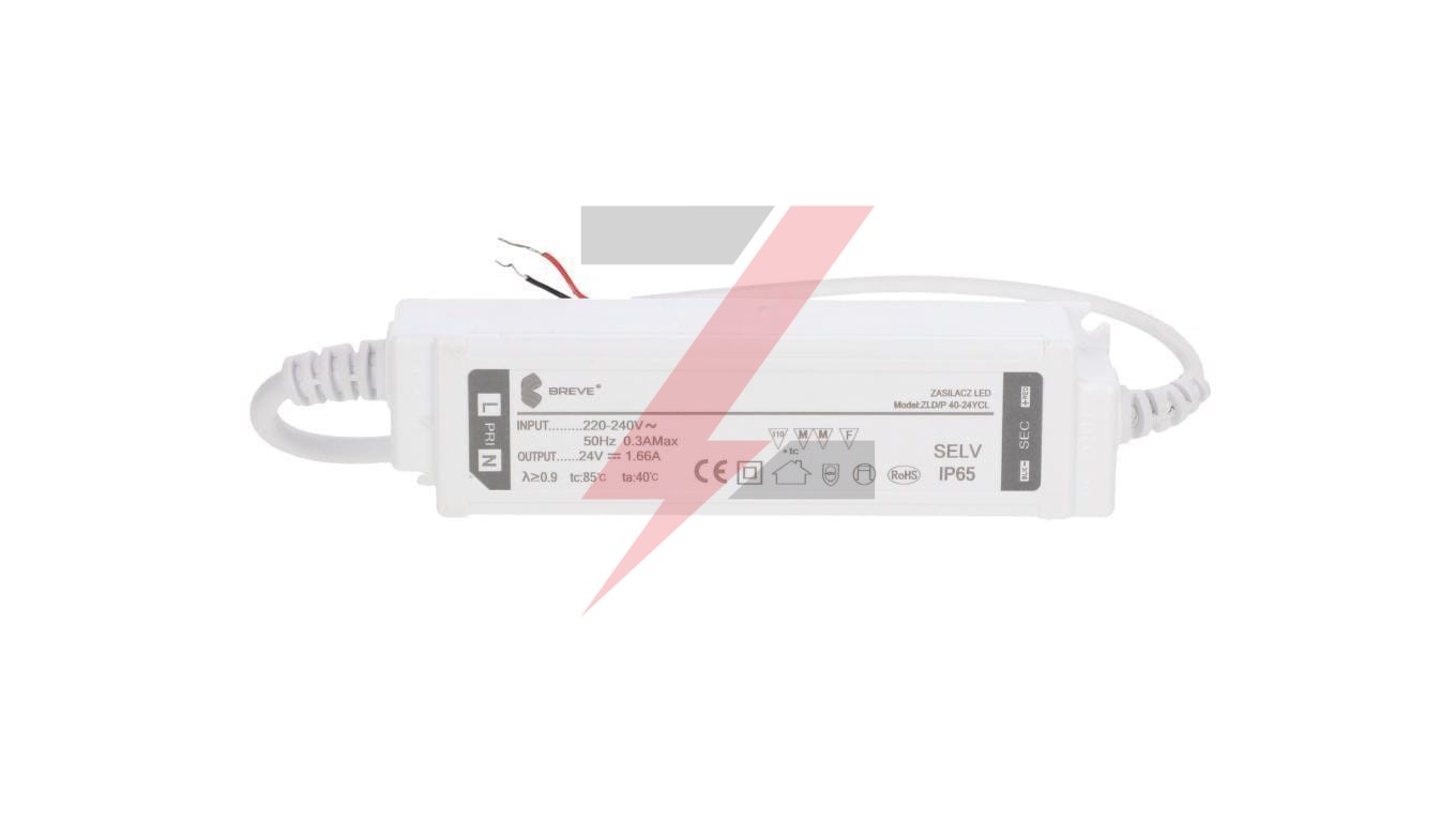 Zasilacz LED 24V DC 40W 1,66A IP65 /z zabezpieczeniami/ ZLDP 40-24YCL 19724-9021