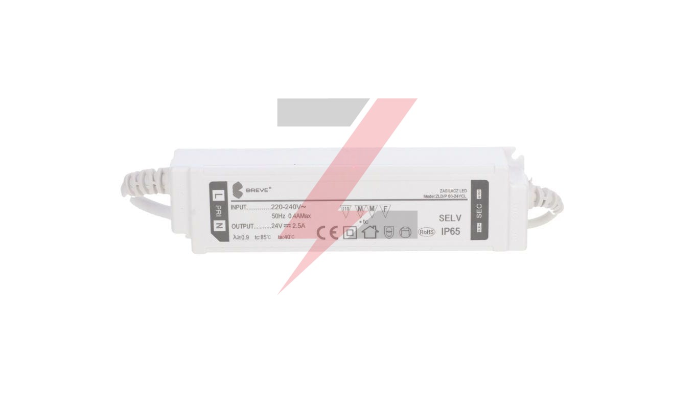 Zasilacz LED 24V DC 60W 2,5A IP65 /z zabezpieczeniami/ ZLDP 60-24YCL 19724-9022