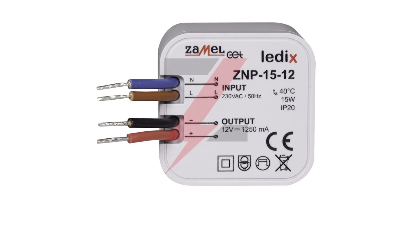 Zasilacz LED dopuszkowy 12V DC 15W ZNP-15-12 LDX10000030
