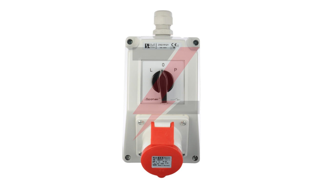 Zestaw instalacyjny z gniazdem 16A 4P (L-0-P) czerwony ZI02R121