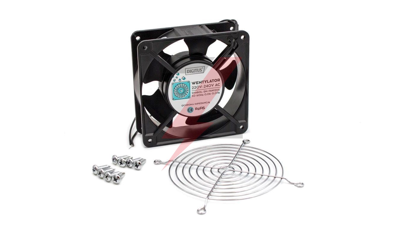 Zestaw: wentylator DN-FAN120S, osłona metalowa DN-FAN120/GR, wkręt DN-FAN-M4.8 - 8 szt DN-FAN120S-KIT