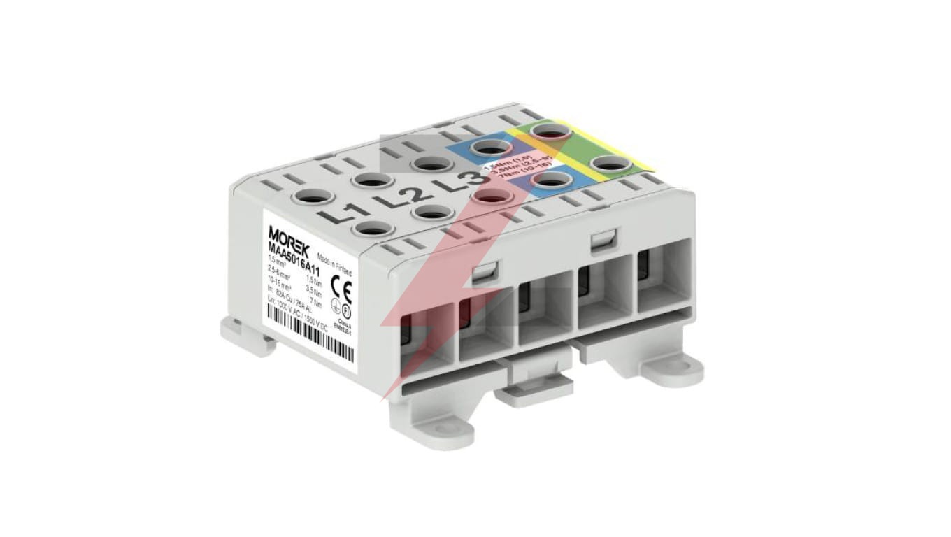 Złączka OTL16-5x szary,niebi, żół-ziel 5x1xAl/Cu 1,5-16mm² 1000V AC/1500V DC Zacisk uniwersalny, montaż DIN i podłoże MAA5016A11